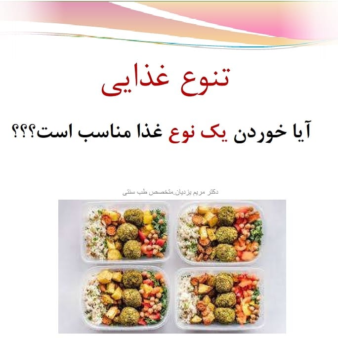 ادامه نکاتی در مورد چگونه غذا خوردن: ✔۲.تنوع غذایی: همانطور که خوردن یک نوع غذای تکراری میتواند به بدن صدمه بزند؛ درهم خوری و خوردن غذاهای متنوع در یک وعده میتواند بسیار نامناسب باشد. امروزه برخلاف قدیم؛ از تنوع غذایی زیادی برخورداریم. انواع میوه ها؛سبزیجات؛ لبنیات و گوشتها به آسانی در دسترس هستند.... بسیاری از مردم برای دریافت ویتامینها و مواد معدنی مناسب؛ سعی میکنند حتما سالاد و ماست را کنار وعده های اصلی داشته باشند... غافل از اینکه خوردن مخلفات باغذا (مثل سالاد و ماست و نوشیدنی) به شدت در دراز مدت به دستگاه گوارش ما بخصوص معده آسیب میزند.....و معده بیمار ؛مسبب بروز سایر بیماریها خواهد بود.. در واقع دستگاه گوارش از هضم درست مواد غذایی مختلف بازمانده و این امر منجر به باقیماندن غذای هضم نشده در دیواره دستگاه گوارش و بروز بیماریهای مختلف به دنبال آن می شود 🔶️در طب ایرانی معتقدیم که هر فرد باید **دستگاه گوارش سالم** داشته باشد تا بتواند از *حداقل غذای* خورده شده؛ *حداکثر بهره* را ببرد... 🔷️اگر نگران نرسیدن کلسیم ماست به بدنتان هستید میتوانید نان و ماست را به عنوان یک وعده غذایی جدا بصورت عصرانه یا شام میل کنید یا مصرف سالاد را یکساعت قبل از غذا تا دو ساعت بعد از غذا به تعویق بیندازید.... 🔶️اگر اصرار به خوردن چیزی با غذای خود دارید پیشنهاد میکنیم چند عدد زیتون تلخ هسته دار کم نمک و یا *یک نوع* سبزی خوردن به ویژه جعفری را نوش جان کنید.این دو مورد میتواند به هضم مناسبتر غذای شما کمک کند. یادتان باشد که تلخ بودن زیتون مهم است در قدیممردم از تنوع غذایی کمتری برخوردار بودند.اما نان و پنیر ساده ای را دور هم به دور از دغدغه نوش جان میکردند و بسیار سالمتر از مردم امروزی بودند که سعی میکنند گهگاه تمام گروههای غذایی را در یک وعده به شکم بریزند و از بسیار از بیماریها شاکی باشند... 🔶️یادمان باشد که معده خانه بیماریهاست و پرهیز سرآمد درمانهاست.... از امروز غذاها را بصورت ساده و بدون مخلفات مصرف کنیم تا سالم بمانیم....🌷🌿 ✔توجه: پست ها از ابتدای کانال بصورت پیوسته طراحی شده است. برای دریافت اطلاعات منسجم درصورت تمایل مطالب را از ابتدا و به ترتیب مطالعه بفرمایید.سلامت باشید✔ #طب_سنتی #طب_ایرانی #حفظ_سلامتی #غذا #تنوع غذایی #درهم خوری #طب_سنتی #طب_ایرانی #انجمن_علمی_طب سنتی #زندگی_ سالم #غذای _سالم #هضم _غذا #خوردن #سلامتی #تندرستی #سبک_زندگی #زندگی_بهتر #چاقی #اضافه وزن