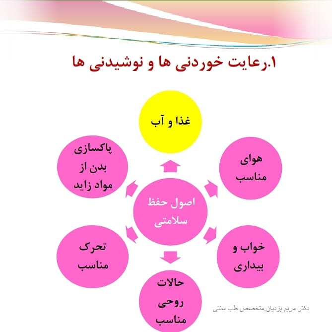 خوردنی ها و نوشیدنی ها؛ یکی از اصول مهم از اصول حفظ سلامتی در طب سنتی ایران؛ انتخاب غذا و نوشیدنی مناسب و رعایت اصول صحیح مصرف آنهاست..... در مطالب بعدی توضیحات کامل تری داده خوهاد شد.... #حفظ_سلامتی #اصول_ششگانه_حفظ_سلامتی #طب_سنتی #طب_ایرانی #انجمن_علمی_طب سنتی #زندگی_ سالم #غذای _سالم #هضم _غذا #خوردن #آشامیدن #آب #ورزش #آرامش #سلامتی #تندرستی #سبک_زندگی #زندگی_بهتر #چاقی #اضافه وزن #مزاج #طبع