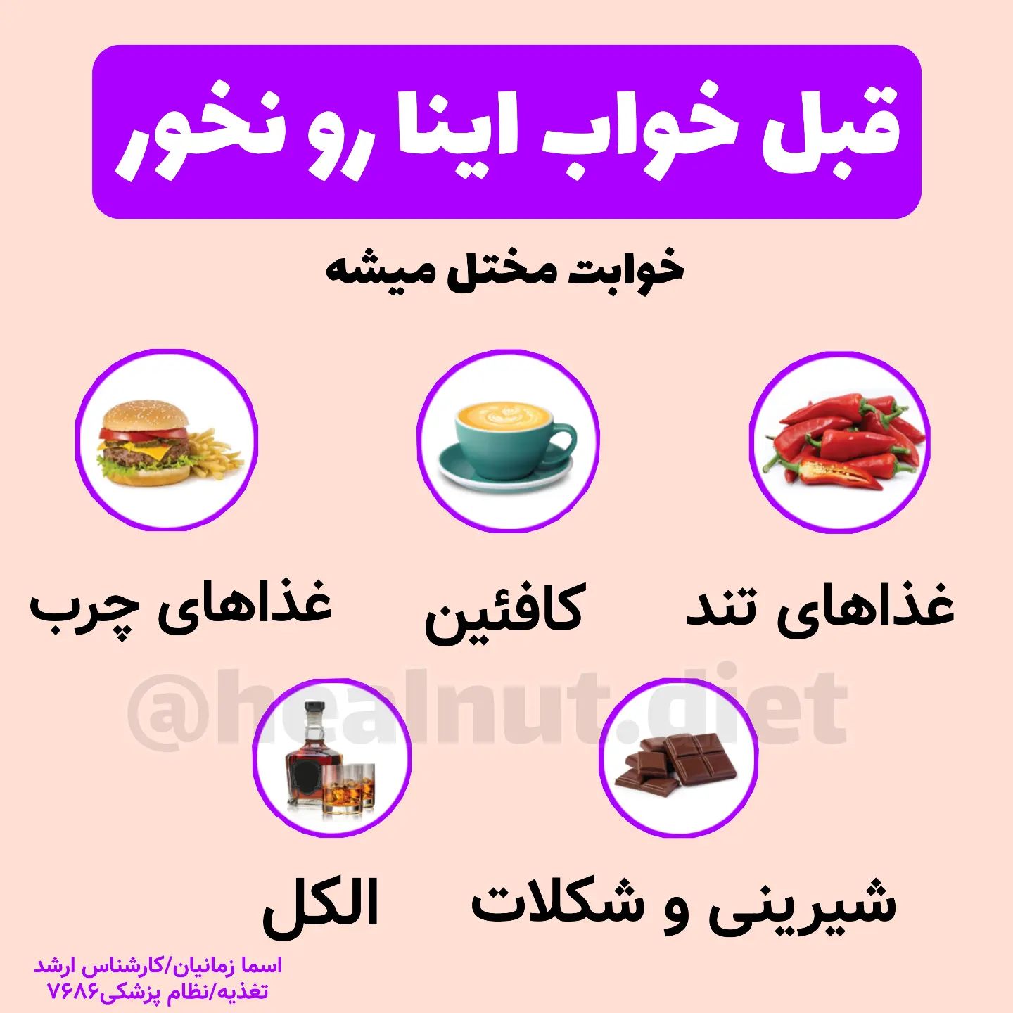 ✅حتما یک ساعت قبل از خواب از چایی استفاده نکنید ✅و نیم ساعت قبل از خواب از گوشی و وسایل الکترونیکی 😍در پست های اینده یک سری روش های رفع بی خوابی هم براتون میذارم . . . . . 💟@healnut.diet 💟@healnut.diet . . . . #بیخوابی #بیخوابی_شبانه #درمان_بیخوابی #بیخوابی_خر_است