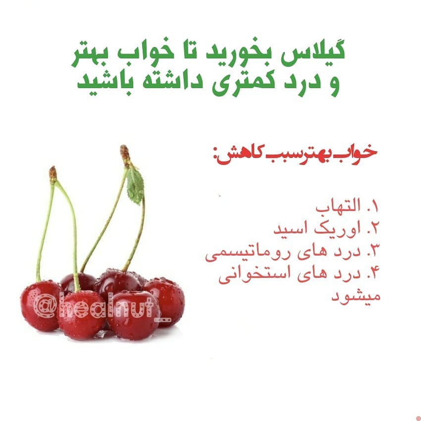 با خوردن گیلاس به بهبود خواب خود کمک کنید، همچین با بهبود خواب، عوارض کم خوابی نیز برطرف خواهند شد _________________________________________ @healnut_ #گیلاس #روماتیسم #روماتیسم_مفصلی #کم_خوابی #بی_خوابی #بی_خوابی😩