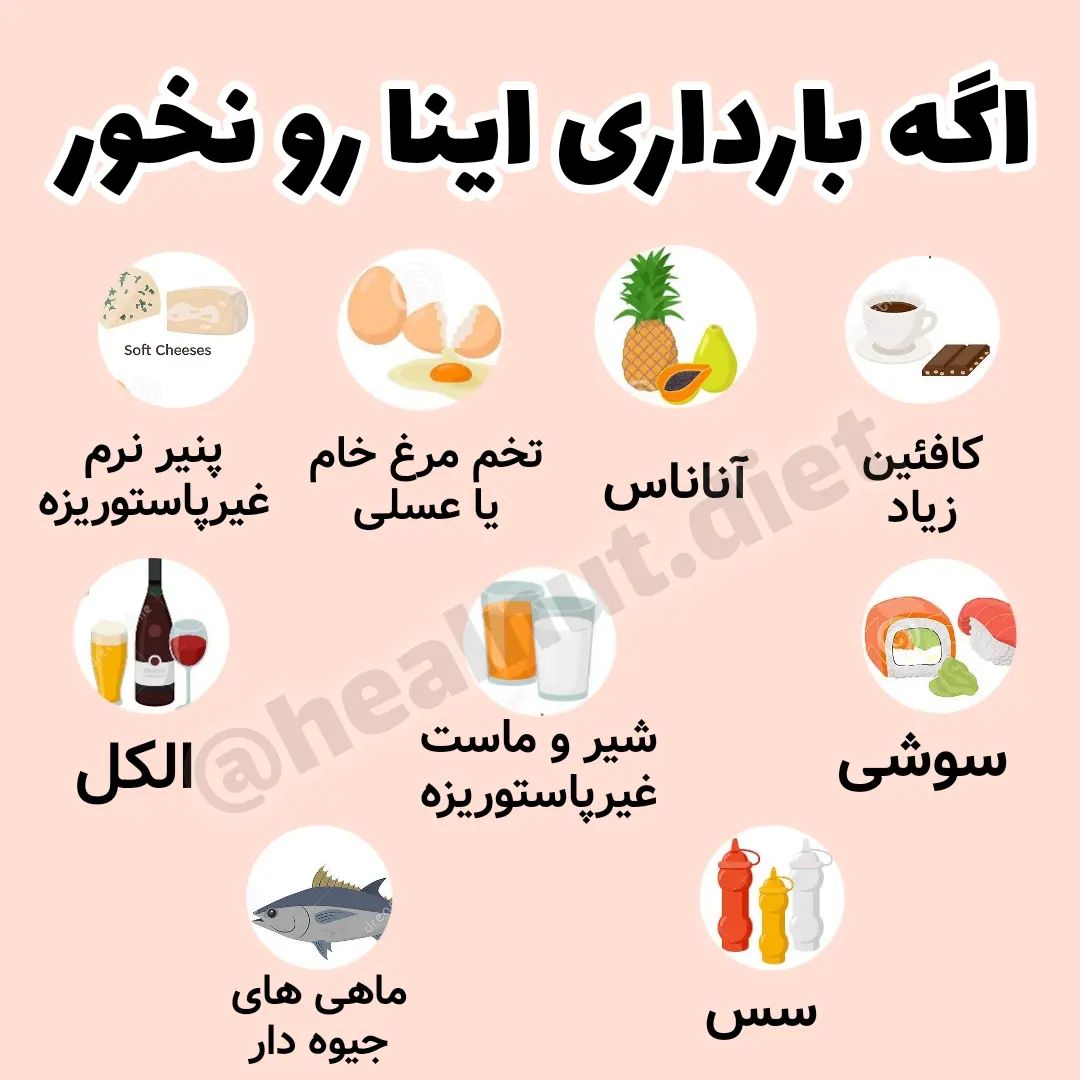 @healnut.diet ✅جگر رو خیلی ها میگن فقط سه ماهه اول مصرف نشه اما برای احتیاط کلا بهتره در کل بارداری خورده نشه ✅ توی این دوران حساس حتما از مواد غذایی پاستوریزه استفاده کنید ✅قبلا درباره مواد غذایی گیاهی هم براتون پست گذاشتم اون لیست رو هم به این موارد اضافه کنید 😍 🍭 من زمانیان هستم و کمکت میکنم بتونی بارداری خوب همراه با وزن گیری سالمتری رو داشته باشی ✅برای دریافت پکیج بارداری مخصوص کنترل اضافه وزن مادر و افزایش وزن جنین میتونی به من پیام بدی⭐ 💓@healnut.diet 💓💓@healnut.diet
