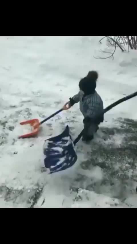 😆The Struggle is real, 14 month old Rory helping his dad shovel in Clarenville, Newfoundland after yesterdays snowfall of 40cm RePost Samantha Burke-Balsom (on Facebook)