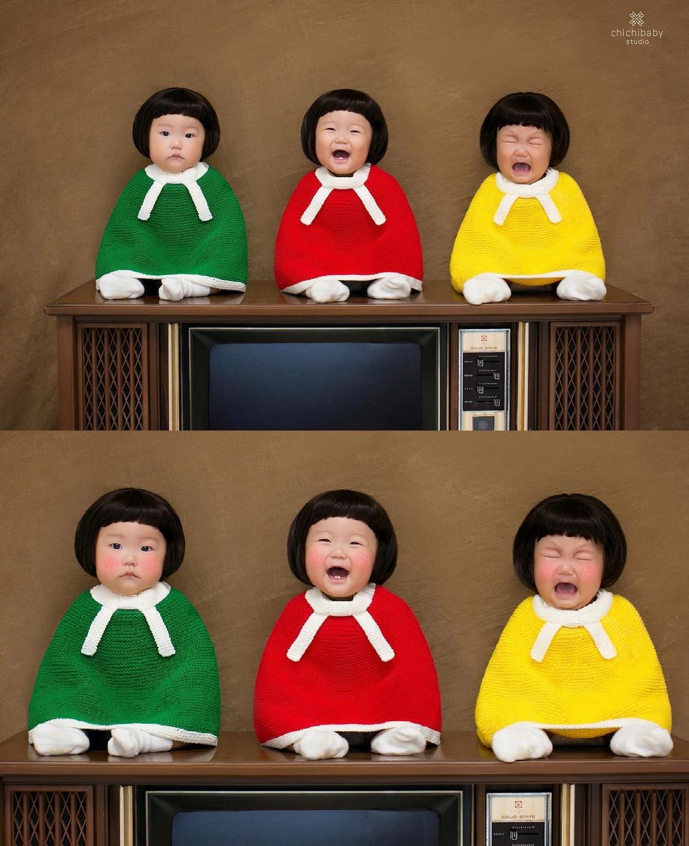 📸 @chichibabystudio 🙂My three face modes in one frame🥰🥰🥰 Which one do you like? #cutebaby #angl #momlife #cutegirls #babiesofinstagram