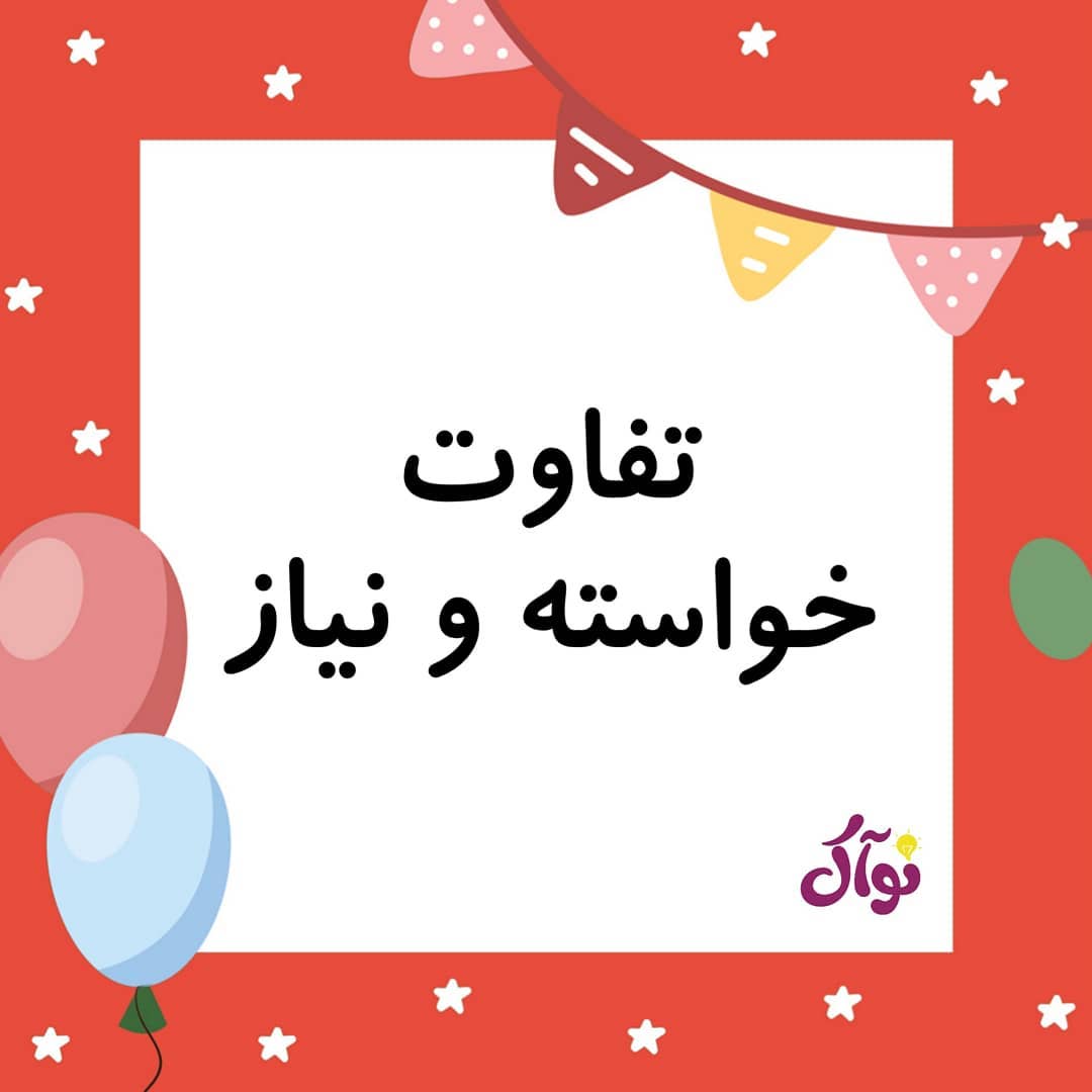 تفاوت خواسته و نیاز 📒 تو مرحله اول کارآفرینی کودک، لازمه دو تا مفهوم براش روشن بشه: 👗تفاوت خواسته و نیاز👕 نیازهای کودک بایستی توسط والدینش تامین بشه اما بعد از ۵ سالگی لازمه خواسته های کودک به خودش واگذار بشه تا انگیزه لازم برای کار و فعالیت در اون به وجود بیاد حالا بزن بریم تا تفاوت این دو تا رو بهت بگم💣 اگه برات مفید بود، حتما برا بقیه بفرست لایک❤ و در صورت داشتن سوال، کامنت یادت نره💬 #نواک #خواسته #نیاز #کارآفرینی_کودک #انگیزه #کار_کودک #مسئولیت_پذیری #اعتماد_به_نفس