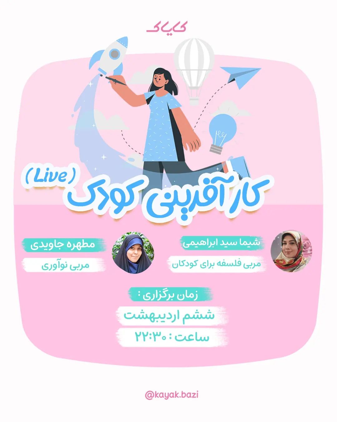 ما به سرعت وارد عصر کارآفرینی میشیم . در این عصر رشد و توسعه هر جامعه ای به پرورش نسلی توانمند و کارآفرین وابسته اس و افراد موفق آینده،کسانی هستن که از کودکی با مهارت های کارآفرینی آشنا بودن . از اونجایی که زمان طلایی شکل گیری شخصیت هر فرد تا سن زیر ۵ سالگی هست ، خوبه که از ابتدا با اصول تربیتی کارآفرینی کودک آشنا بشیم . به این منظور با همکاری بامانو لایوی با موضوع کارآفرینی کودک برگزار میکنیم 😇🙏 سوالاتی که در لایو امروز بهشون میپردازیم: 🔹️منظور از کارآفرینی کودک چیه ؟ آیا به این معنی هست که باید کودک یک کسب و کار شخصی داشته باشه؟ 🔹️ضرورت تربیت کودک کارآفرین چیه ؟ 🔹️از چه سنی آموزش های کارآفرینی به کودک رو باید شروع کنیم ؟ 🔹️چه بستر و ابزار هایی برای آموزش مهارت های کارآفرینی به کودکان مفیده؟ 🔹️بازی های حوزه کارآفرینی کودک باید چه ویژگی هایی داشته باشند؟ 🔷️به میزبانی : خانم شیما سید ابراهیمی (کارشناس ارشد فلسفه و مربی فلسفه برای کودکان ) از @bamano.life 🔷️با حضور : خانم مطهره جاویدی (کارافرین و مربی نوآوری ) تاریخ برگزاری : ۶ اردیبهشت _ساعت ۲۲:۳۰🕥 #کارآفرینی #کار_آفرینی#کشف_استعداد #نوآوری #لایو #بامانو #کایاک_بازی