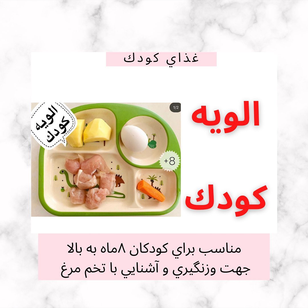 سلام سلام✋🏻 امشب ي غذا آوردم بمب انرژي🥰🤗سالم و ساده و مقوي❤️ديگه از غذا چي ميخواي؟؟🤔 🌈سالاد الويه (+٨)🥪 سينه مرغ:٥٠گرم🍗 سيب زميني:نصف عدد متوسط🥔 تخم مرغ:١عدد🥚 هويج:نصف عدد كوچك🥕 پياز:١عدد كوچك🧅 ♨️سينه مرغ،سيب زميني و هويج رو با پياز و ي كوچولو زردچوبه بزاريد خوب بپزه.تخم مرغ رو آبپز كنيد وسپس همه مواد رو به جز پیاز رنده كنيد و ٣قاشق غذاخوري از آب مرغ رو با چند قطره ليمو به مواد بزنيد و مواد رو با گوشتكوب بكوبيد، (اگه دوست داشته باشيد ميتونيد كمي ماست هم بهش بزنيد)بعد اونهارو ميتونيد گلوله هاي كوچك كنيد تا ي غذاي انگشتي خوشمزه و مقوي بشه واسه كوچولوهاي قشنگتون🥰👶🏻 ✅نكته: ➖اگه هنوز سفيده تخم مرغ رو به كودكتون نداديد وتست نكرديد مي تونيدفقط زرده رو رنده كنيد.اما سفيده هم واسه زير يكسال مجازه😍 ➖اگه كوچولوتون به تخم مرغ حساسيت داره يا به هيچ عنوان تخم مرغ نميخوره ميتونيد حذفش كنيد. 🎀كلي اموزش و مراقبت هاي كودك داخل پيج داريم حتما ي سر بزن🤩🤩 @mama_jaann @mama_jaann @mama_jaann #غذاي_كمكي_كودك #كيك_كودك #سالاد_كودك#غذاي_كودك #غذاي_انگشتي_كودك #تغذيه_كودك_نوپا