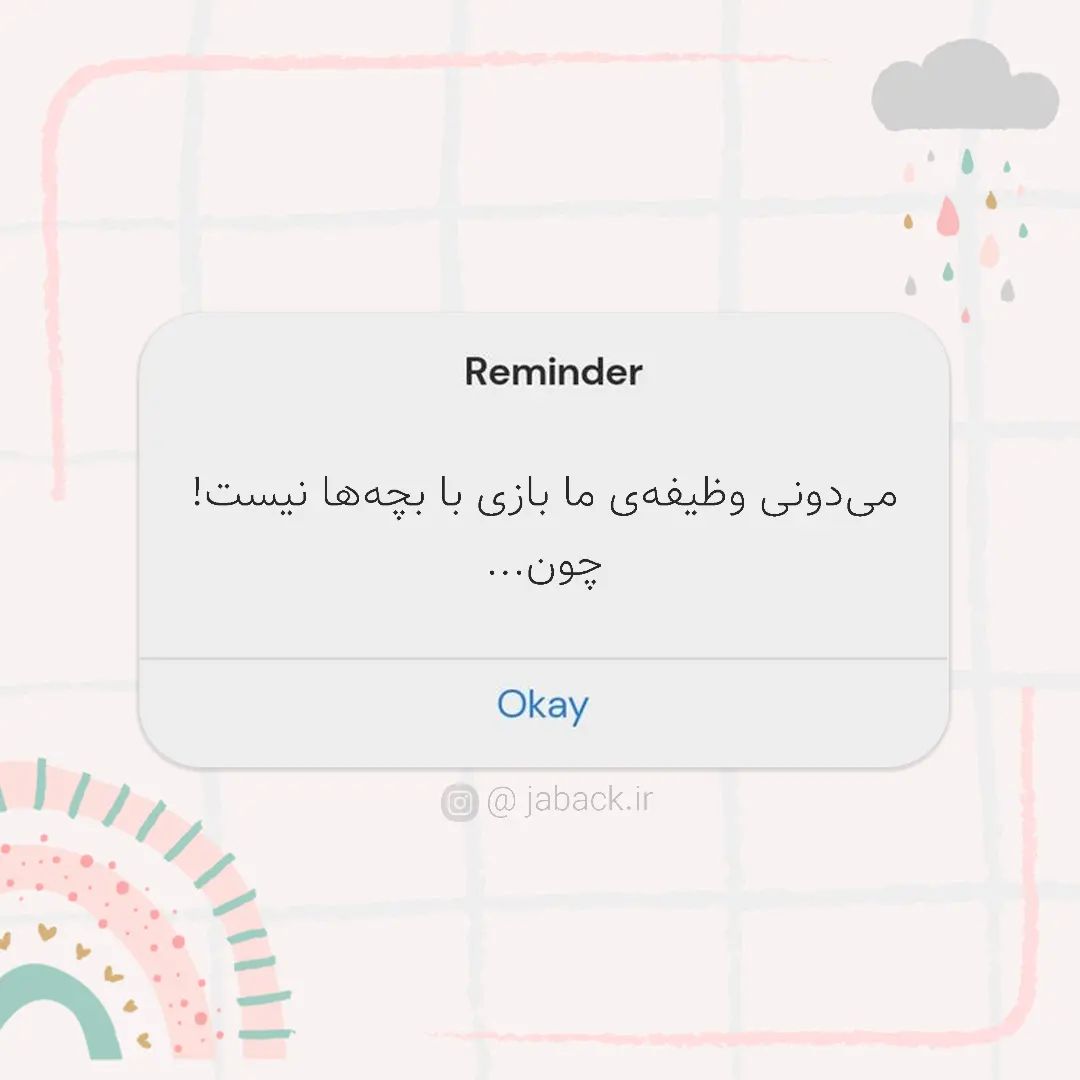 "نه...!" ..... "بازم نههه!"... "گفتم که نههه!".... دیدین ؟ یه وقتا اینقدر پشت هم مجبور میشیم به بچه ها "نه" بگیم که خودمون دیگ از این همه رد کردن درخواستهای بچه ها عذاب وجدان میگیرم. 😔 اونجاس که ممکنه به خاطر این عذاب وجدان الکی به خودمون فشار بیاریم و کارایی رو انجام بدیم که شاید درتوانمون نباشه یا اصلا درست نباشه. ما مامانا احتیاج داریم یه وقتا به یکی که بزنه رو شونه مون و یادآوری کنه که مامان خوبی هستیم. حتی اگر تعداد "نه"هایی که توی شبانه روز میگیم یه کوچولو زیاد شده باشه. براشماهم پیش اومده ؟ #فرزند_پروری #والدین_بخوانند #والدگری #تربیت_فرزند #نه_گفتن #مادر_کافی #یادآوری #مادر_و_كودك #مادر_نمونه #مادر_خوب #روانشناسی_کودک #اصول_تربیتی #اصول_تربیت_فرزند