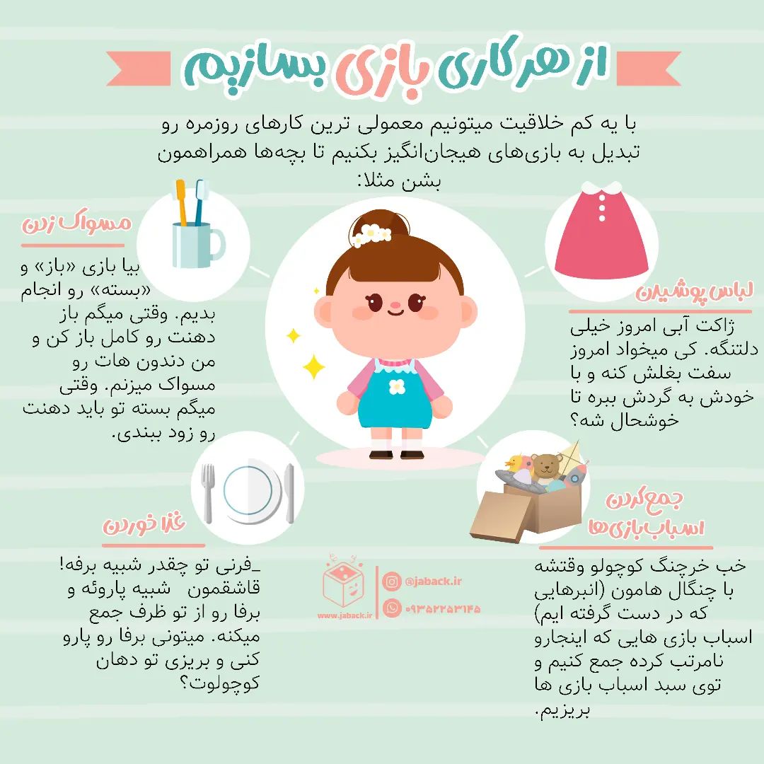🧩🎈 اینکه ما توی موقعیت های سادهی زندگی بازی رو وارد کنیم؛ یه راهکار عالیه تا با بچهها ارتباط بگیریم و همکاری اونها با ما بیشتر بشه. این کار سیستم هشدار رو در مغز بچهها خاموش میکنه و به اونها احساس امنیت و راحتی میده. #فرزندپروری #والدگری #تربیت_کودک #ایده_بازی #سرگرمی_کودک #ایده_سرگرمی #بازی #بازی_باکودک #بازی_با_کودک #بازی_آموزشی #بازی_در_خانه #کودک_سالم #کودک_خلاق #غذا_کودک